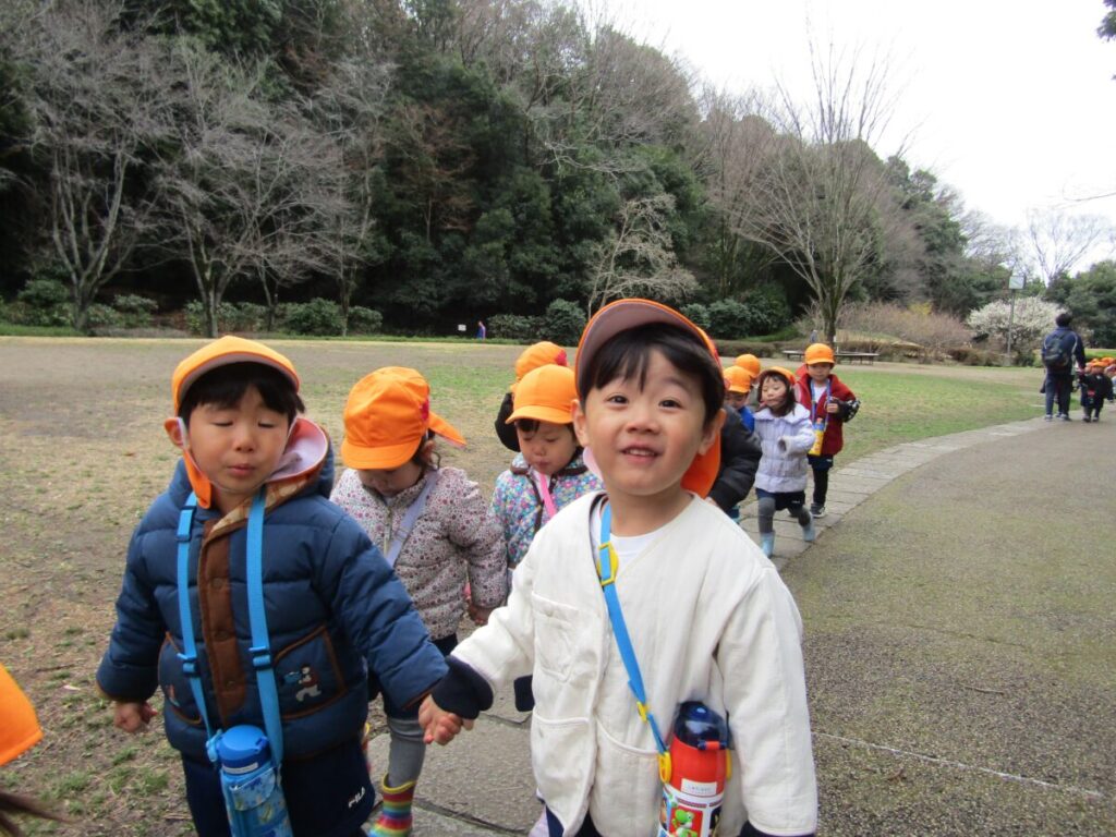 今日は、少し寒さのある園外保育にはなりましたが、すみれ組さんは、初めて 東高根森林公園に行きました!